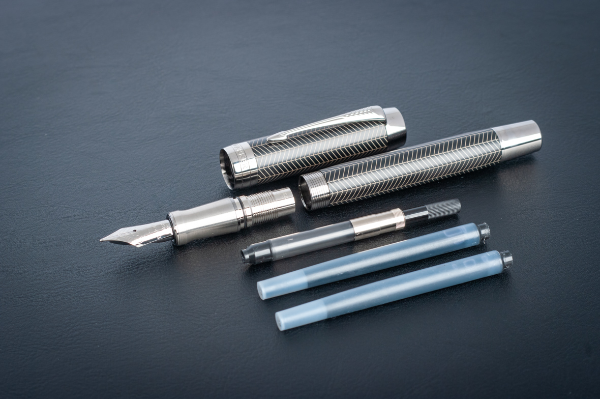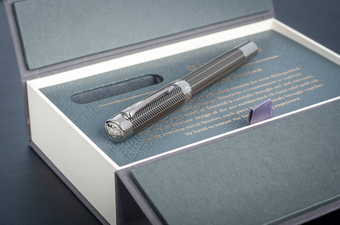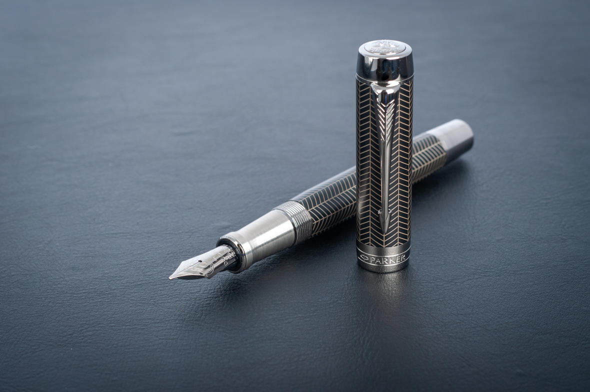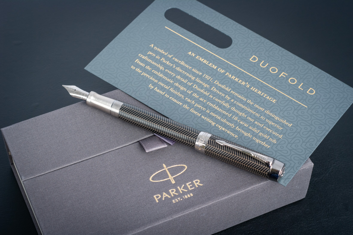 Перьевая ручка Parker Duofold Prestige Centennial Black Chevron CT от официального дилера Parker в Сургуте. Вы можете дополнительно заказать гравировку, которая подчеркнет Вашу оригинальность и придаст памятность статусному подарку. Все ручки Паркер поставляются в фирменном футляре.