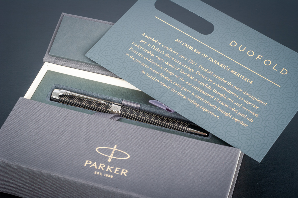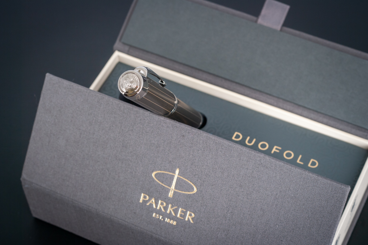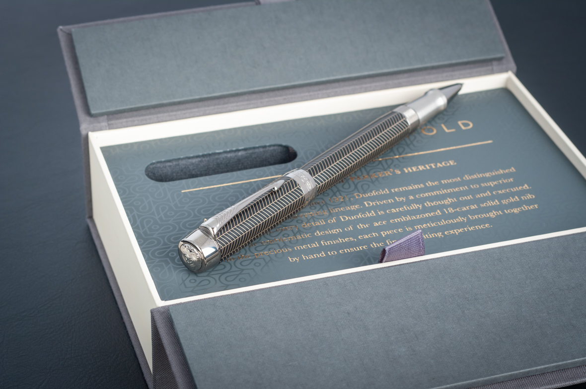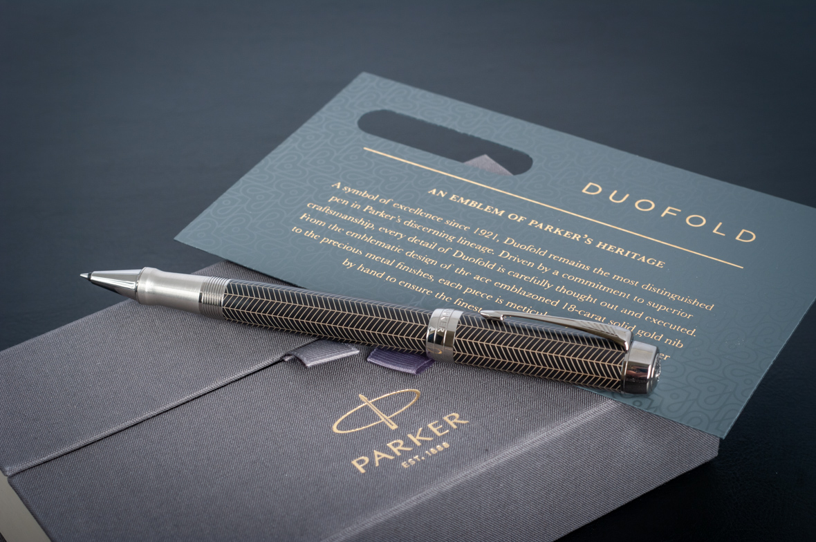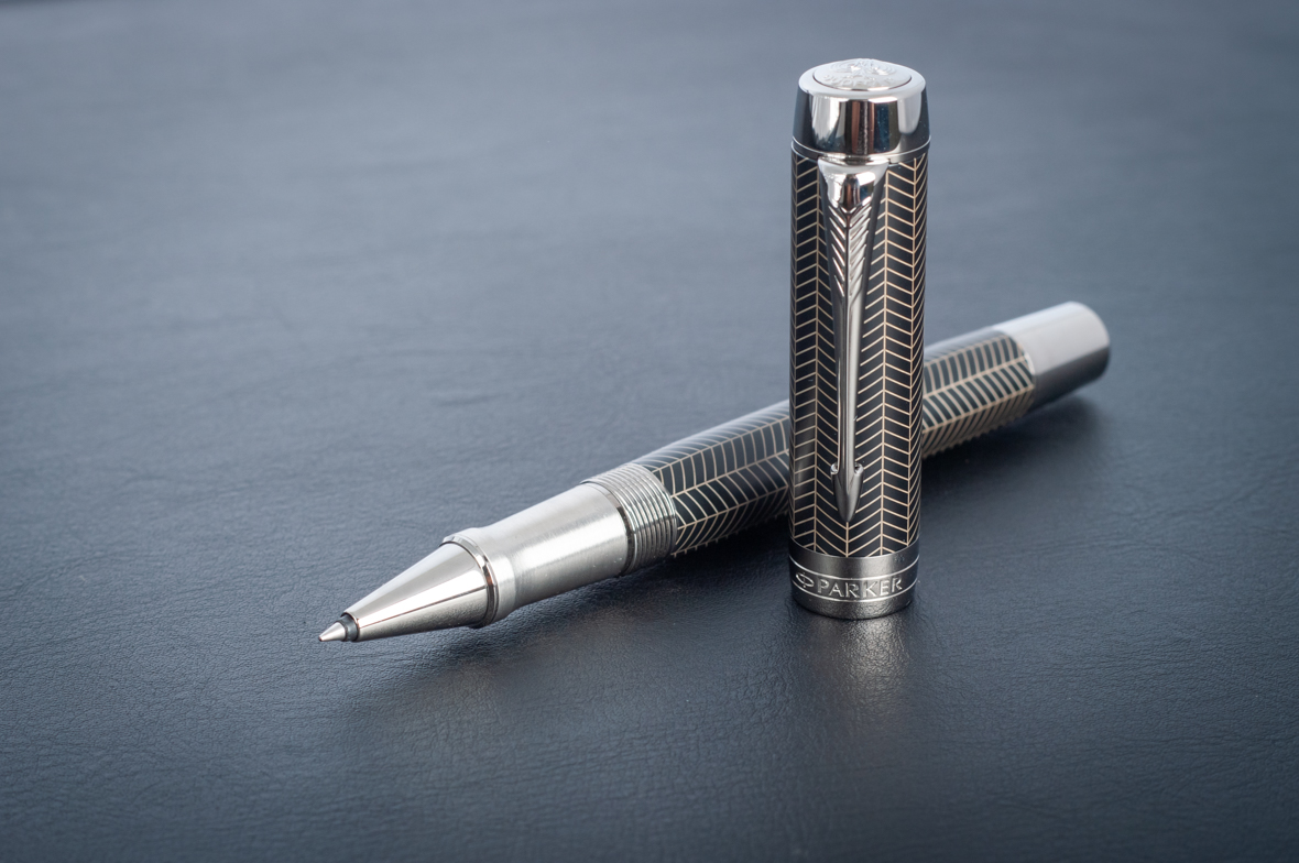 Ручка роллер Parker Duofold Prestige Centennial Black Chevron CT от официального дилера Parker в Сургуте. Вы можете дополнительно заказать гравировку, которая подчеркнет Вашу оригинальность и придаст памятность статусному подарку. Все ручки Паркер поставляются в фирменном футляре.